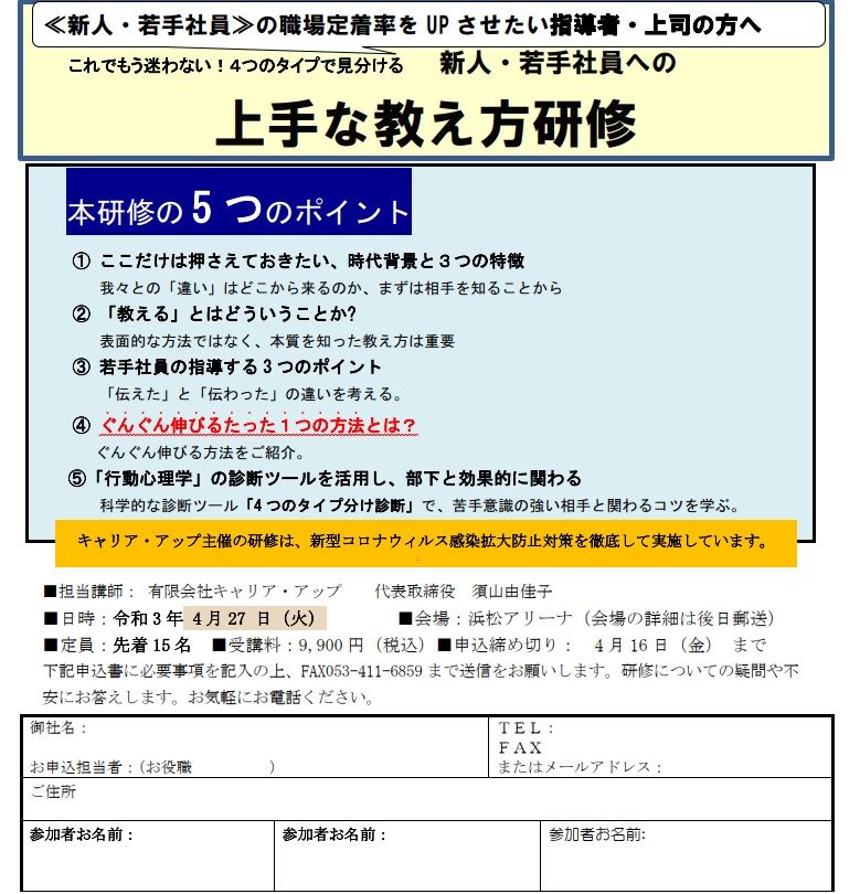 ※今どきの若者に対する指導の仕方のセミナーを企画してみましたご覧下さい!!
