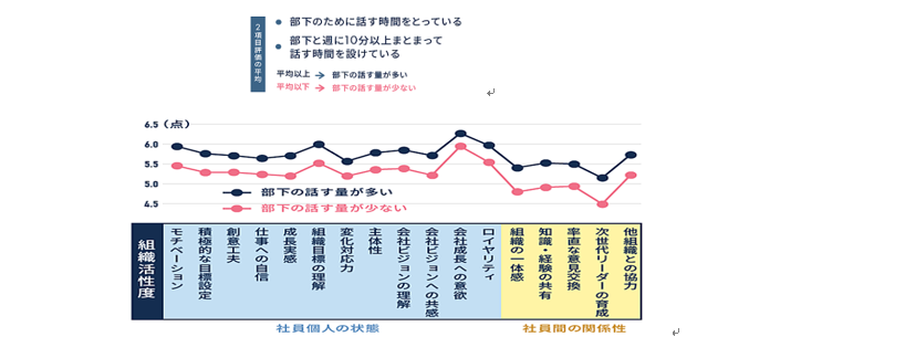 ■『上司が部下と話す量』と『組織活性度』との関係