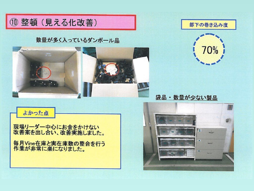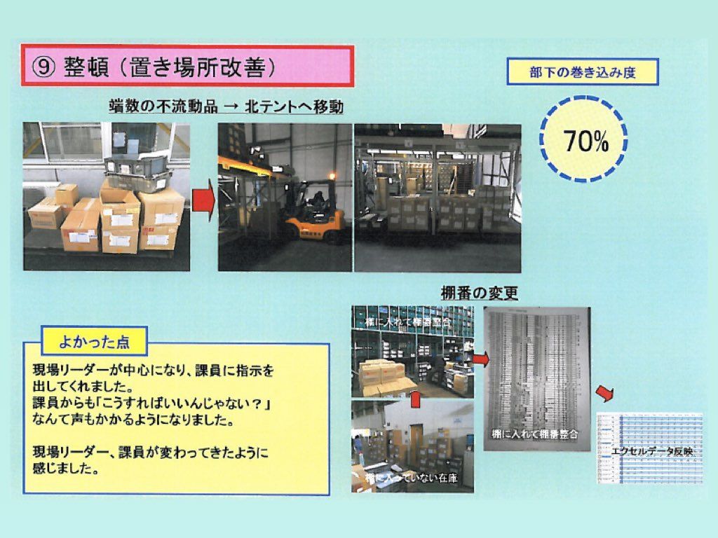 - 自分で動くのではなく、部下を使いながら対応し、本来の役割(部全体をみる)ができるようになった。特にコミュニケーションを取りながら部下を使うことが出来るようになったのは、一番大きな成果となりました。