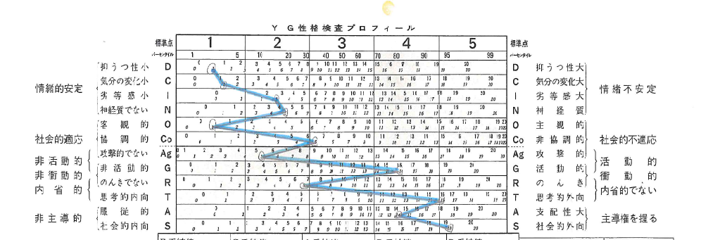 その方の本質的な性格(現在の状態も含めて)即ち、抑うつ、情緒安定性・客観性・協調性・計画性・慎重さ・リーダーシップ・社交性などを診る診断です。